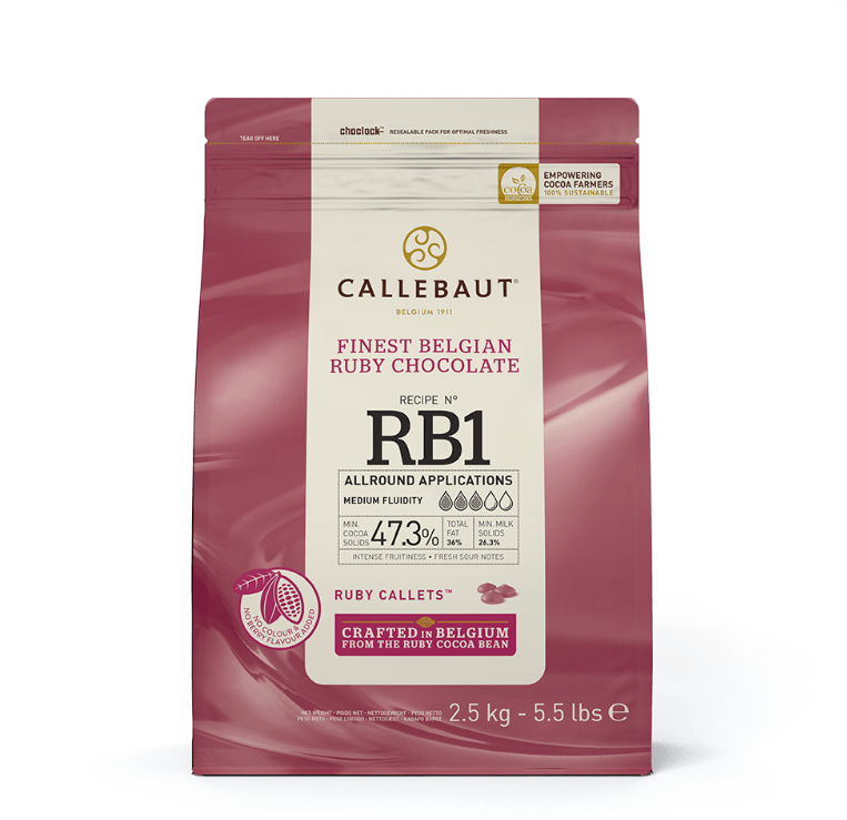 Immergetevi nel suo colore rubino. Perditi nella ricchezza del suo bouquet fruttato, con le sue note fresche e leggermente acidule. Nato dalle fave di cacao ruby, il cioccolato Ruby RB1 non contiene coloranti o aromi di frutta aggiunti. Il colore e il sapore unico vi invitano a esplorare nuovi abbinamenti e nuove idee per cioccolateria, pasticceria e dessert.